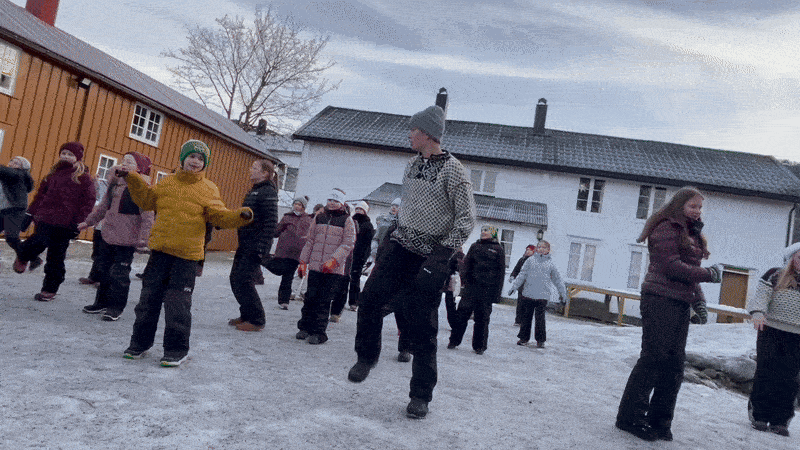 Her øves det på julekrøll og nissesprell
