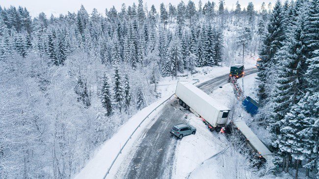 Fikk skrens og traff lastebil
